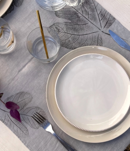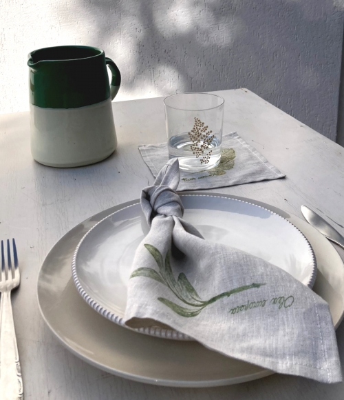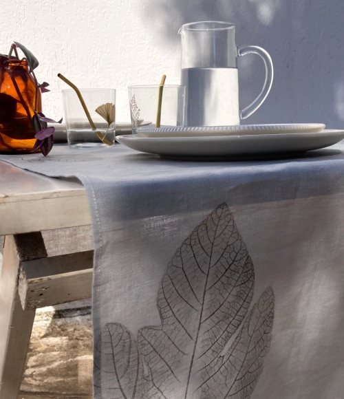Il runner abbinato ad una coppia di tovaglioli in puro lino natural con stampa botanica a scelta tra una nostra selezione di specie botaniche SCEGLI QUI permettono di apparecchiare il tavolo con semplicità ed eleganza. Realizzato sartorialmente in Puglia (100% made in Italy).